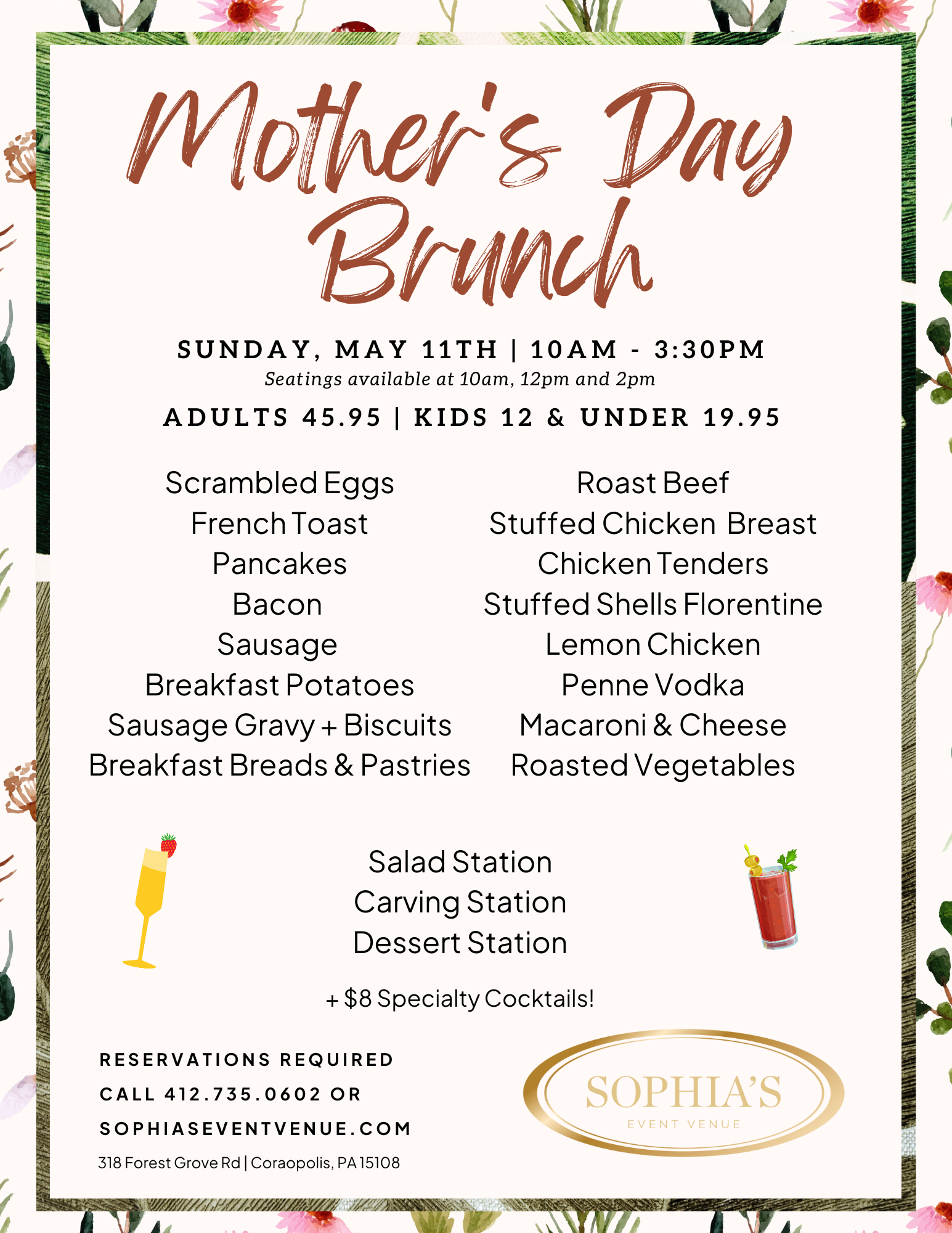 Celebrate Mother’s Day in style with a delicious brunch at Sophia’s!